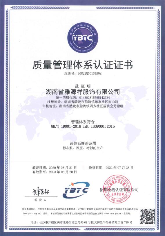 1、企業概況 湖南省雅源祥服飾有限公司地處湘贛邊境素有瓷城之稱的醴陵郊區,企業創建于1995年,是行政執法制服、被裝的生產企業。2、組織機構 跟隨改革開放的步伐,我公司不斷發展壯大,公司董事會下設總經理辦公室、生產部、技術部、質檢部、財務部、采購部、業務部等部門,下設有流水線西服生產車間、標志服生產車間、襯衣生產車間、... [更多]